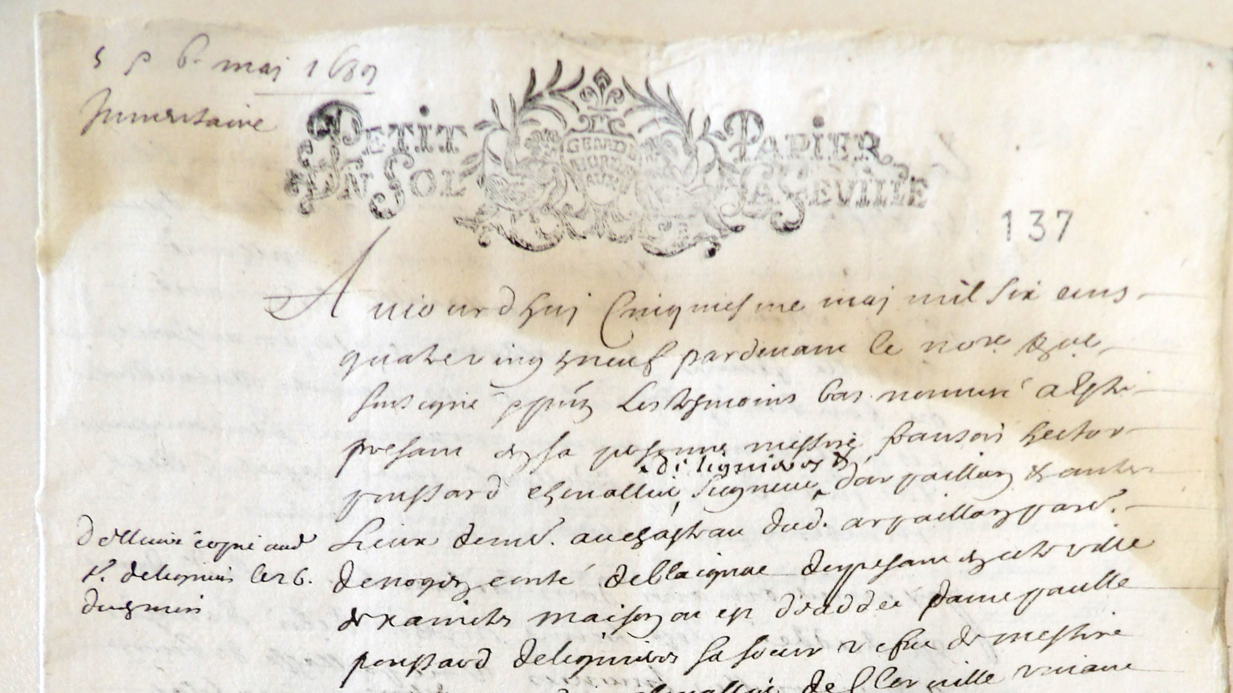 L’objectif était donc de retrouver, consulter et photographier l’IAD de Paule Poussart de Lignières, datant de 1689 et provenant d’un office de Saintes, ainsi que d’identifier et consulter les archives et minutes de tous les notaires présents sur l’île d’Oléron, d’octobre 1677 à mars 1678, afin d’éventuellement retrouver le propre IAD de Clerville ou bien d’autres documents le concernant directement.