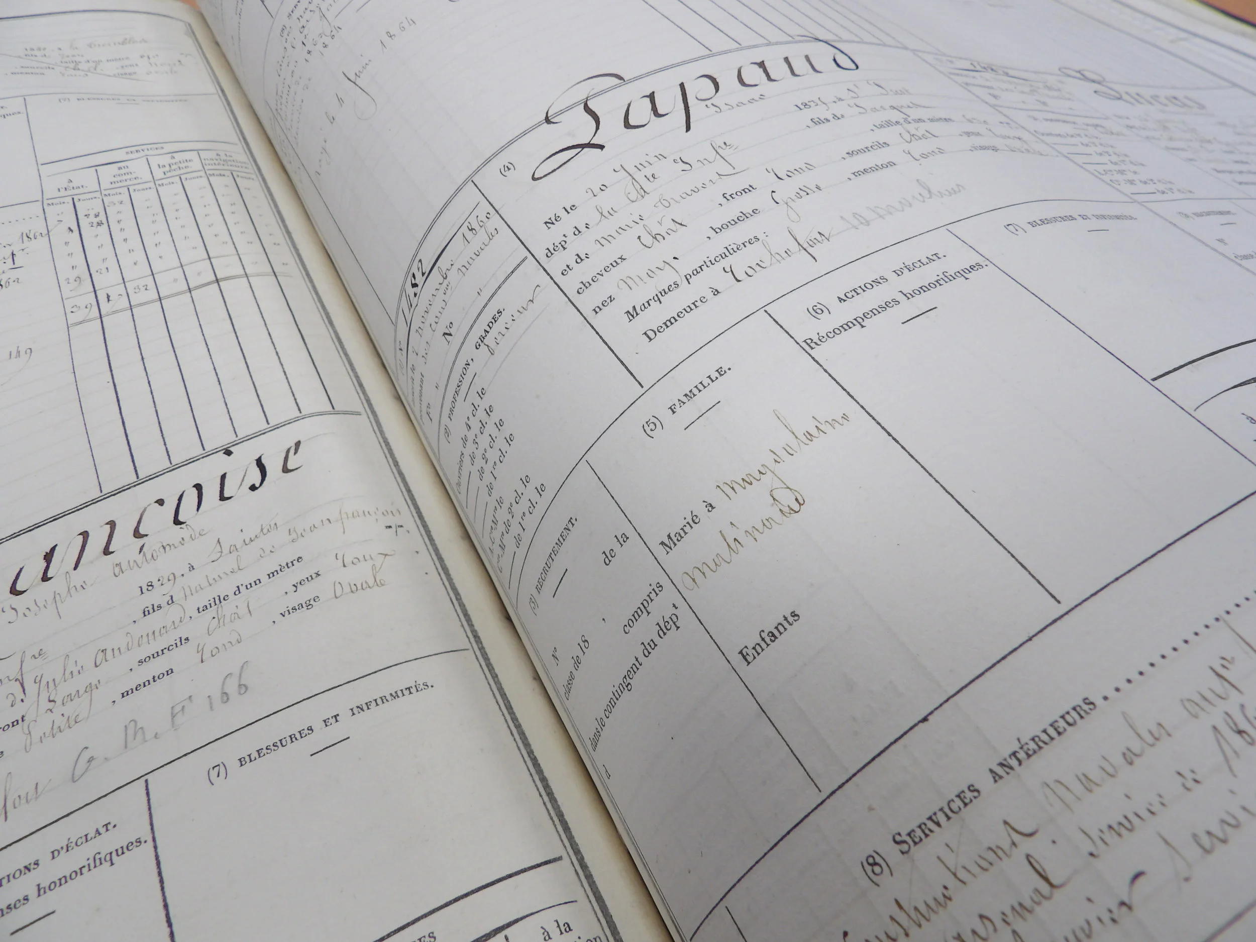 L’idée était donc de regrouper l’ensemble des informations connues afin d’explorer plusieurs pistes de recherche menant, sans surprises, vers le Service Historique de la Défense de Rochefort. En effet, les registres de matricules, les rôles d’ouvriers, les dossiers de pension et leurs nombreuses pièces justificatives révèlent beaucoup de la vie de nos ancêtres.